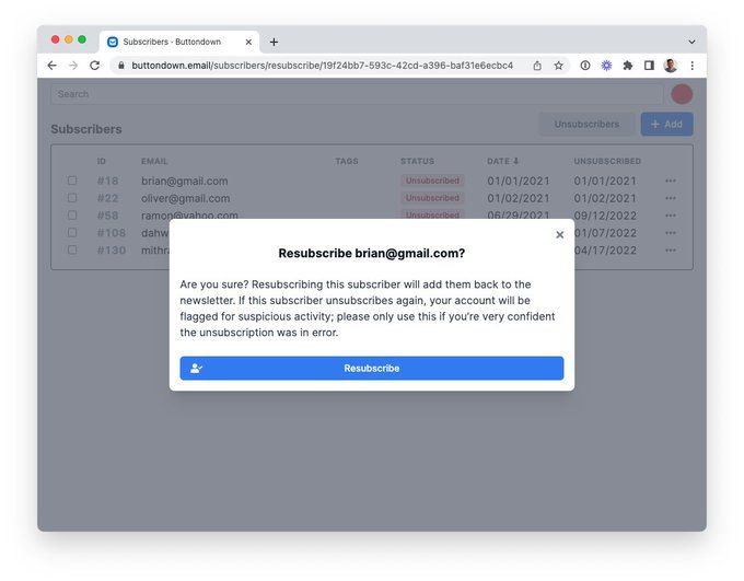 You can now resubscribe subscribers who have accidentally unsubscribed.