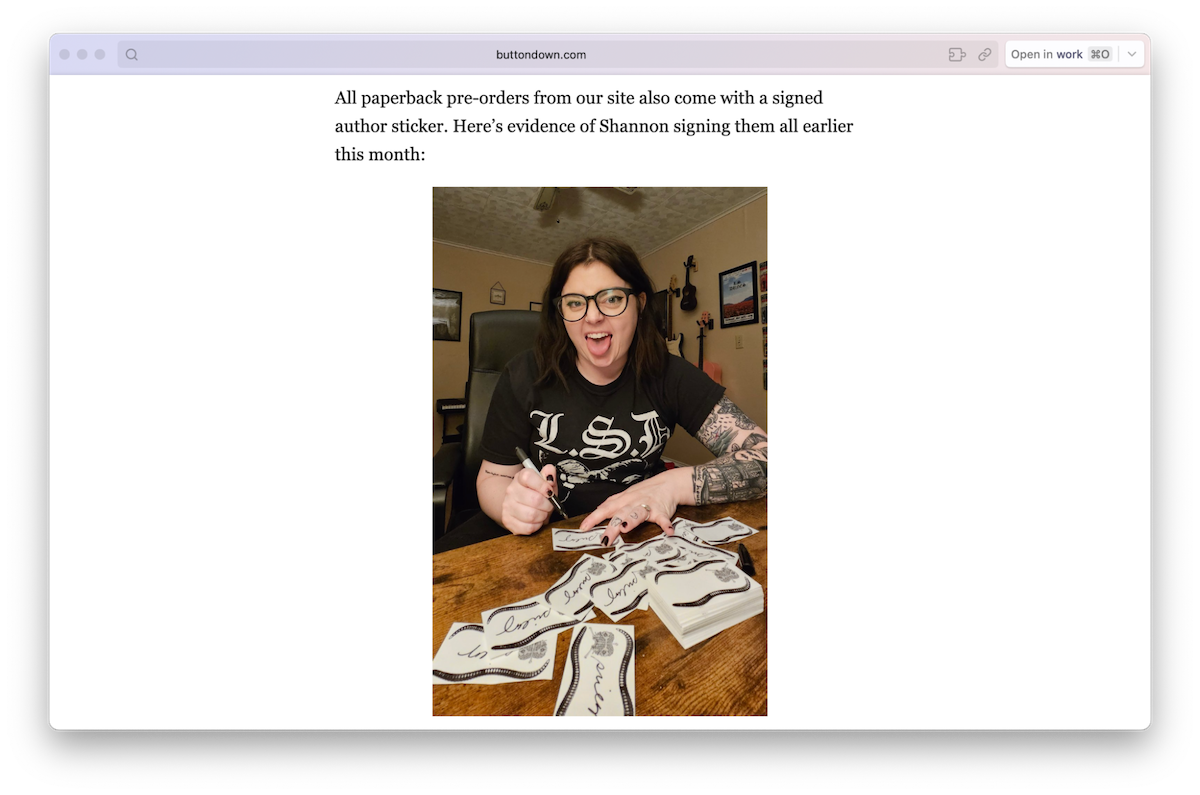 Going long is fine too. You might show off the artwork, write about the design process and inspirations, share a brief summary of the book, and describe what inspired it. But make sure to insert your pre-order link and launch date (not a countdown, since people open emails on their own schedules) directly below the cover. And while you’re at it, update your newsletter signup page and social profiles with info about the release.