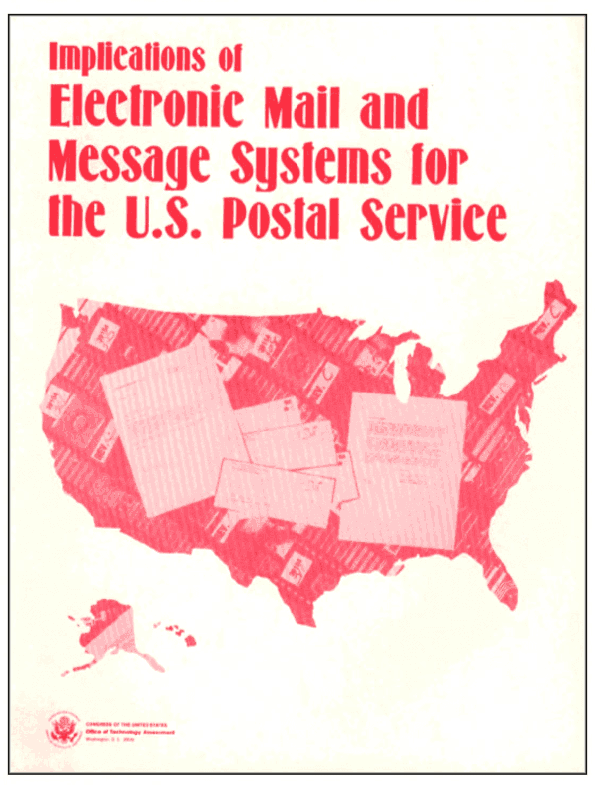 This time, the threat seemed existential. A 1982 Congressional report predicted that “Two-thirds or more of the mailstream could be handled electronically,” and “the volume of mail is likely to peak in the next 10 years.”